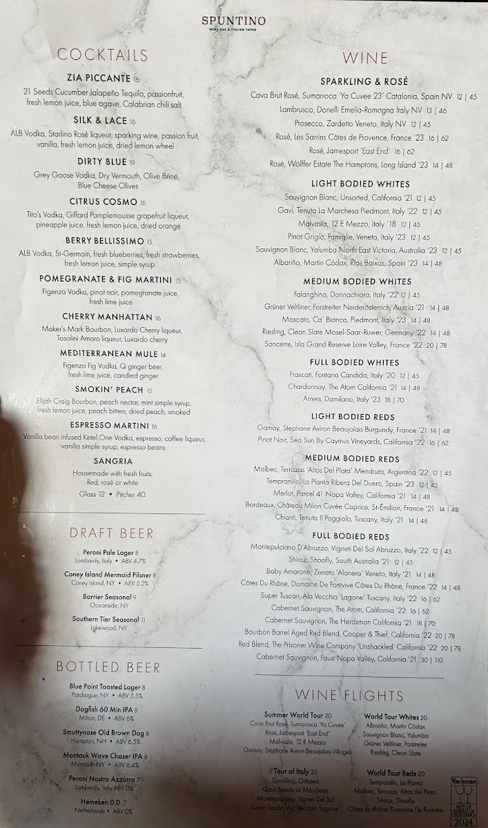 Welcome to Spuntino Wine Bar & Italian Tapas, an inviting and vibrant wine bar nestled at 1002 Old Country Rd, Garden City, NY. This spot is a treasure trove for lovers of exquisite Italian cuisine, offering a delightful selection of tapas that are perfect for sharing among friends or savoring solo.